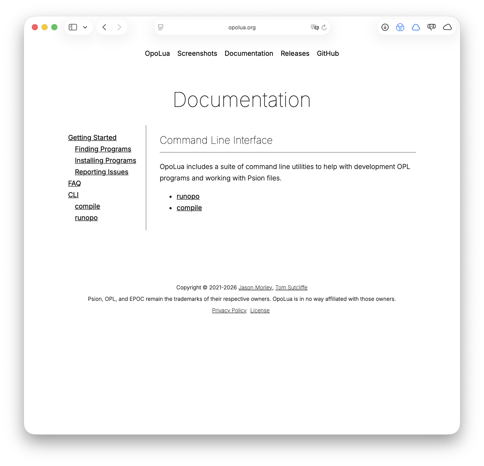 As OpoLua has grown to target multiple platforms, support different OPL versions, and include a suite of CLI utilities, it’s become clear that short FAQ we created when we first shipped was insufficient. Keen to make room for growth, I added a documentation section, styled after Just The Docs:
