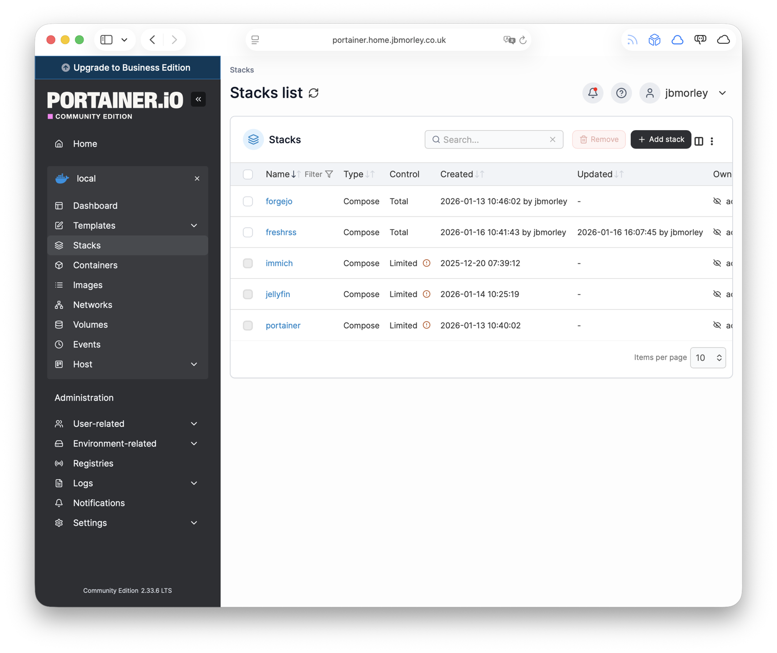 Once it was up and running (docker compose up -d), I found Portainer offers a comprehensive management interface, allowing you to create new container ‘stacks’ using Docker Compose files:
