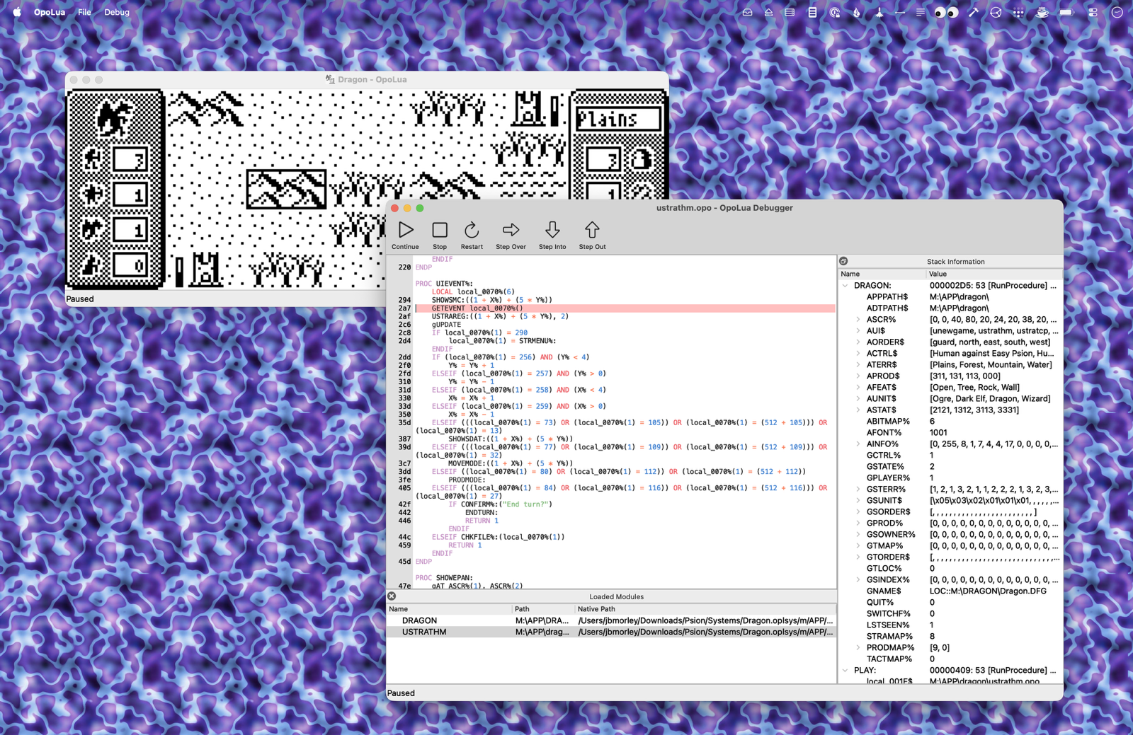 In addition to the new repository, there have been significant developments in OpoLua over the past few months, with Tom landing a huge feature last week in the form of an interactive decompiler and debugger, complete with breakpoints and live updates: