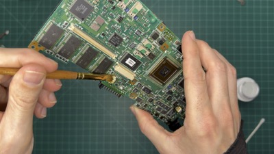 Having found the corrosion, I decided to fully tear down both machines and clean the affected area of the mainboard with white vinegar, followed by a healthy rinse in IPA. While I could have done this with the mainboard in the case, I didn’t want to risk further damaging the already-brittle plastics with the vinegar.