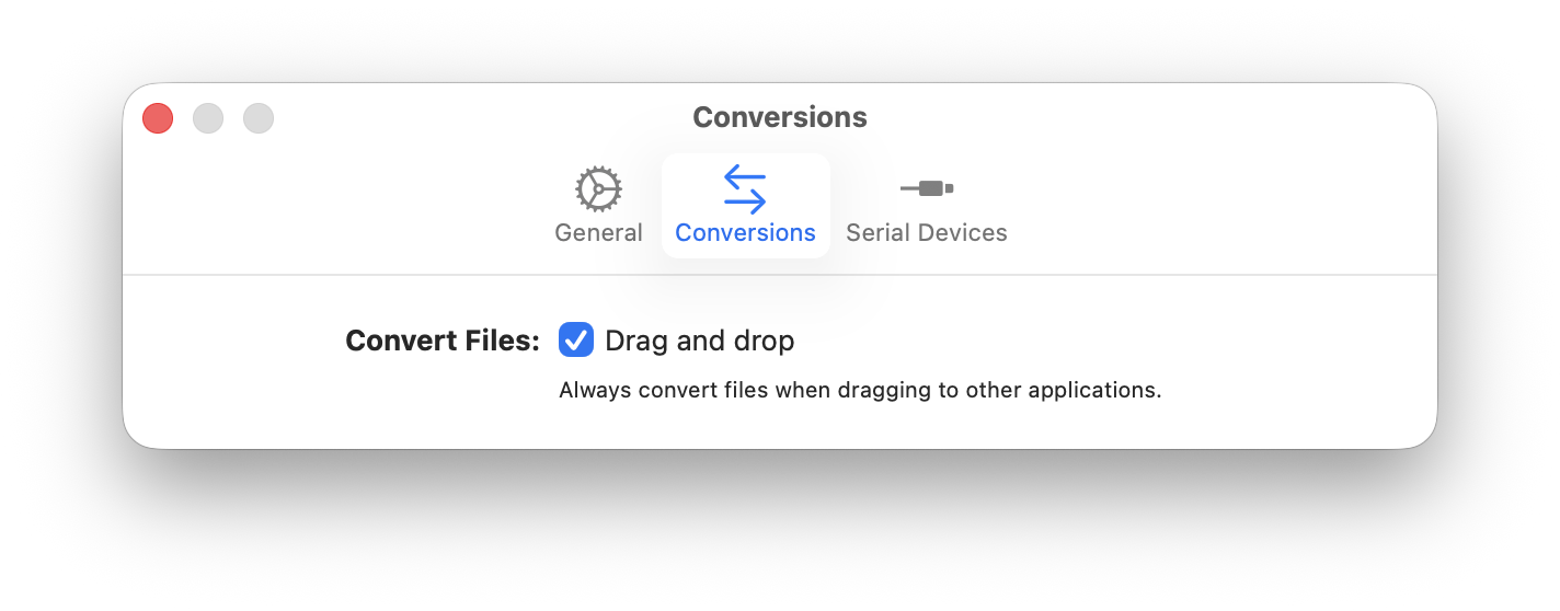 Looking again at this code, there are some elements of the architecture that I’d love to revisit: I especially dislike the duplicated filename generation code. This exists because macOS needs to know the target filename upfront for drag-and-drop operations, but I could at least change my converter API to inject it back into the perform: block.