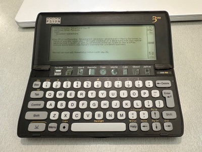 Inspired by Alex’s evergreen enthusiasm for the Psion Series 3 devices, and my recent Series 3a maintenance efforts, I’d love to find a way to incorporate these into my daily routines. Boasting a full keyboard, they are natural writing devices so, for day 28 of my December Adventure, I decided to focus on improving my workflows for journaling and writing-up projects on my Series 3mx.