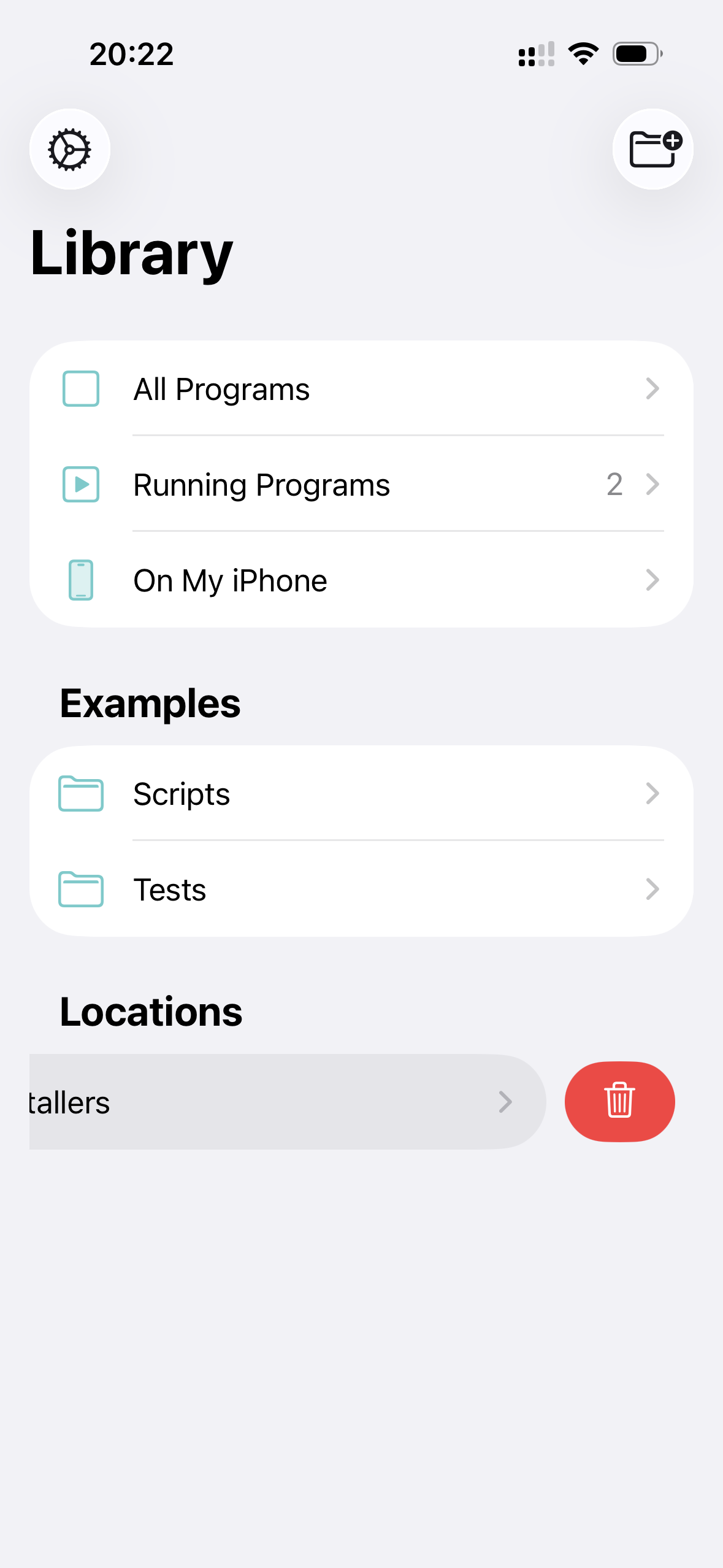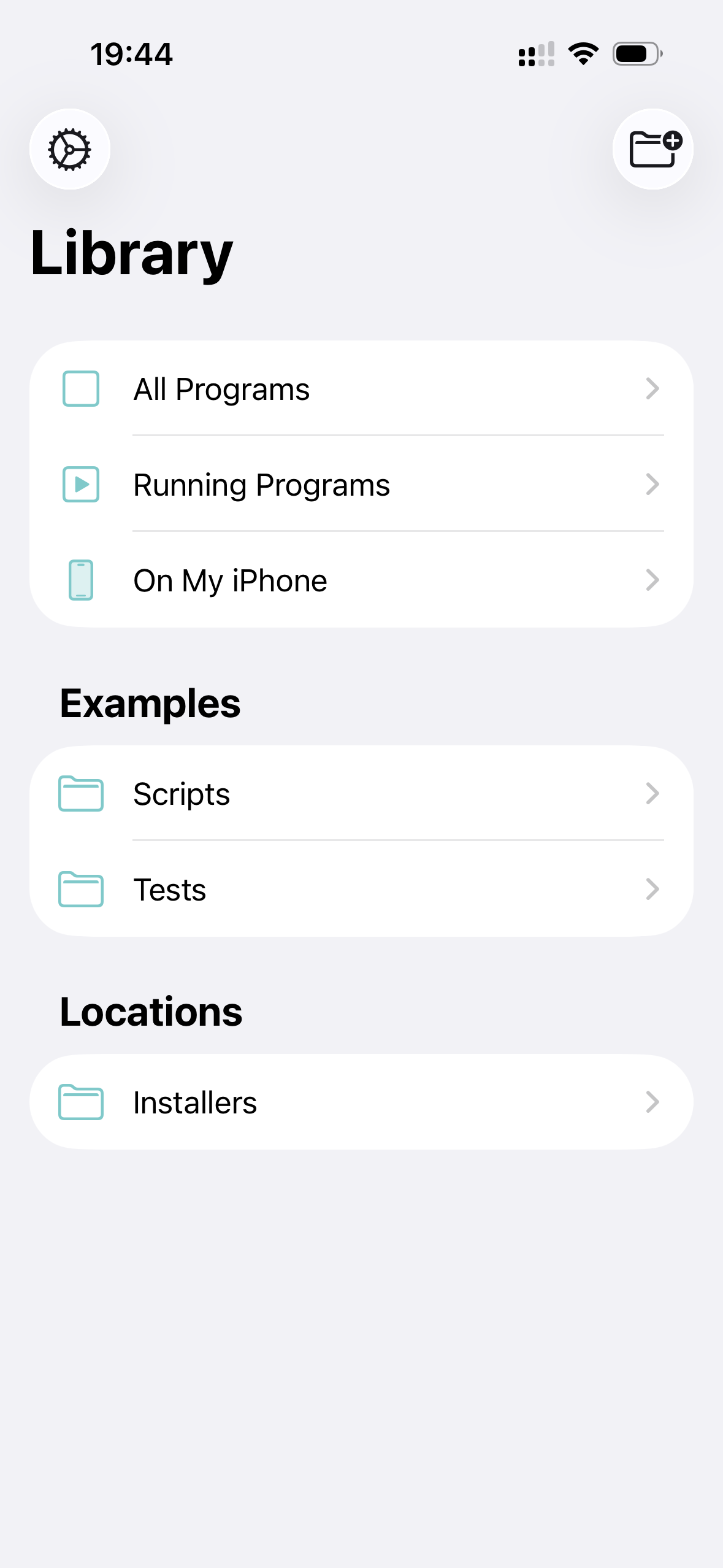 With the introduction of the Software Index browser, there are now three different ways to get software into OpoLua: adding a folder to the sidebar, opening a standalone SIS (installer) file, and downloading a program from the Software Index. To try to better differentiate these flows, I switched to a plus-badged folder symbol for adding folders to the library, and moved the installer and Software Index flows to a menu in the main programs view. My hope is that by associating the actions with particular views, users will have an improved context for understanding the operations.