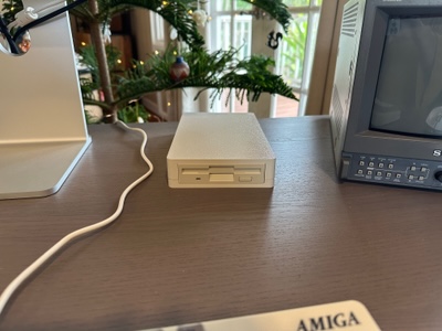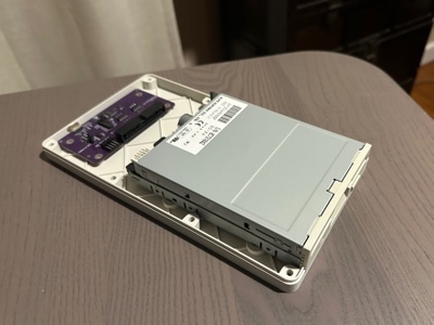 The case, designed in OpenSCAD, prints in two halves and ended up being a pretty good color match for my floppy drive, when printed using Bambu Labs’s Matte Bone White filament.