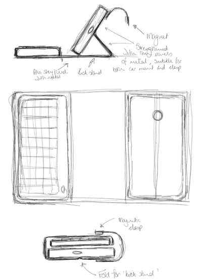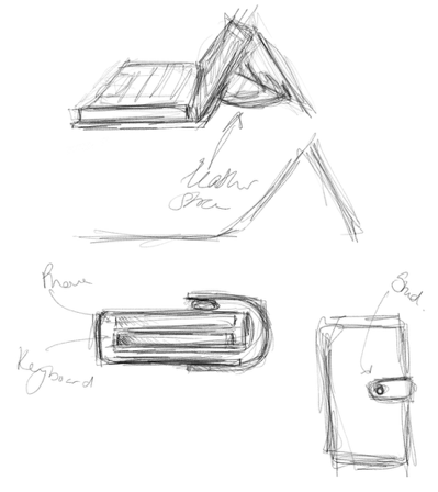 I also contemplated a dual-panel design akin to many iPad cases. In both variants, the case would wrap around the screen of the phone to stop the keyboard scratching it when closed.