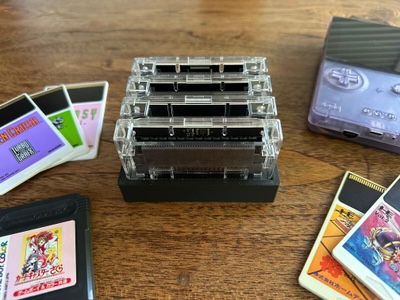 The Analogue Pocket is a wonderfully flexible FGPA retro-gaming handheld, with adapters for Game Gear, TurboGrafx-16, Neo Geo Pocket Color, and Lynx cartridges. Storing those adapters can be a bit of a pain though, so I designed a little 3D printed storage solution.